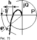 Запас устойчивости по модулю характеризует удаление годографа АФЧХ разомкнутой САУ от критической точки в направлении вещественной оси и определяется расстояниемh от критической точки до точки пересечения годографом оси абсцисс (рис.75).