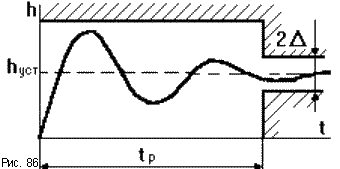 2. Время переходного процесса tпп - это время от момента воздействия, начиная с которого колебания управляемой величины не превышают некоторого наперед заданного значения, то есть|h(t)-hуст|
