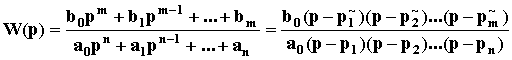 где p~1,p~2,...,p~m - нули передаточной функции, p1,p2,...,pn - полюса передаточной функции.