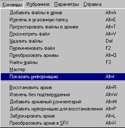 Меню WinRAR містить такі пункти: Файл, Команды, Избранное, Параметры і Справка (рис. 11).