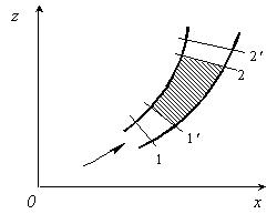 | Рис. 1. Схема руху елементарної струминки рідини (газу) |