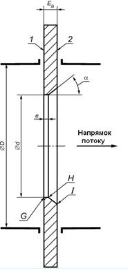 – діаметр отвору або горловини пристрою звуження потоку при робочій температурі; Е – коефіцієнт швидкості входу