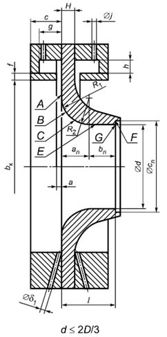 А – вхідна циліндрична ділянка; B – збіжна конічна частина;