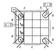 Представлена на карті Карно нормальна форма АБО може бути спрощена за певних умов.
