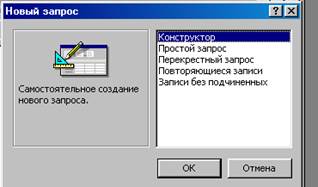 · Створіть новий запити натиснувши кнопку “Створити” (New) на екрані висвітлить ся вікно для побудови нового запиту(рис.).