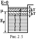 Навіть при температурі 1000К ця доля збуджених електронів не перевищує 1÷2%.