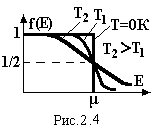 Як же змінюється функція Фермі-Дірака при високих температурах? Коли Е-μ >> kT, тобто Е >> μ + kT, одиницею в знаменнику функції (2.11) можна знехтувати, і функція перейде у функцію (2.7) Максвелла-Больцмана, як і повинно бути у випадку переходу виродженої системи в невироджену.