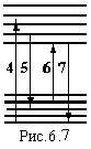 Перші кількісні дослідження фотолюмінесценції були проведені англ.. фізиком Дж. Стоксом (1819-1903), який у 1852 році встановив закон, який носить його ім’я: при фотолюмінесценції виникає свічення з більшою довжиною хвилі λфл, ніж довжина хвилі збуджуючого світла λзб (рис.6.6). Цей закон стає зрозумілим із зонної діаграми (рис.6.5). Збуджуючий фотон повинен мати енергію не меншу, ніж ширина забороненої зони ΔЕg (перехід 1), в той час як випромінюваний при переході 2 фотон має меншу енергію, а отже і більшу довжину хвилі. Але спостерігається і антистоксівська люмінесценція з протилежним співвідношенням довжин хвиль (рис.6.6 заштрихована область). Пояснюється це тим, що збуджуючий фотон поглинається уже збудженим атомом. Електронні переходи відбуваються між електронно-коливальними рівнями (рис.6.7). Переходи 4 і 5 викликають стоксівську, а 6 і 7 – антистоксівську люмінесценцію.