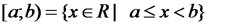 Множество [a;b] называется отрезком с началом a и концом b; (a;b) – интервалом с началом a и концом b; [a;b), (a;b] – полуинтервалом с началом a и концом b; любое число х (a<x<b) называется внутренней точкой этих промежутков.