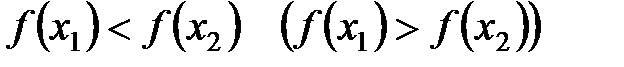 задана на некотором множестве Х. Данная функция называется возрастающей (убывающей) на множестве Е Ì Х, если для любых х1 и х2 из множества Е, таких что х1 < х2, выполняется неравенство