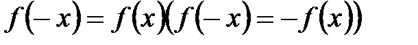 называется четной (нечетной), если при изменении знака у любого значения аргумента, взятого из области определения функции, значения функции не изменяются (изменяют только знак), т.е.