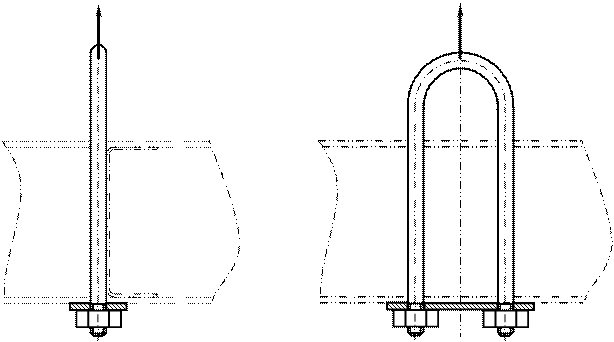 Данное приспособление можно использовать для приложения нагрузки вблизи силовых элементов – лонжеронов, нервюр и шпангоутов. Недостатком является необходимость выполнения отверстий в обшивке. Это устройство, как и парусиновые лямки может быть использовано для приложения только односторонней нагрузки.