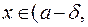 определено множество – интервал (а – δ, а + δ), симметричный относительно точки а. Этот интервал называется δ-окрестностью точки а, а δ – её радиусом. Эта окрестность определяется неравенствами: