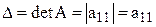 Определение 2. Численной характеристикой матрицы первого порядка, то есть определителем первого порядка, называется величина ее элемента