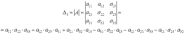 Определителем матрицы третьего порядка, или определителем третьего порядка, называется число, которое вычисляется по формуле: