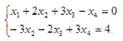 Здесь ранг расширенной матрицы равен рангу основной матрицы и равен, очевидно, двум. Система имеет бесконечно много решений, каждое из которых можно получить, придавая х3 и х4 конкретные значения.