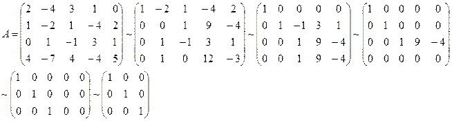 1) Существует минор 1-го порядка, например 𝑎11=2≠0 ⇒r≥1