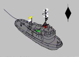 - судно, буксируемое лагом, должно выставлять кормовой огонь и в передней части - бортовые огни.