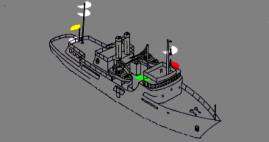 - Если толкающее судно и судно, толкаемое вперед, жестко соединены в сочлененное судно,они должны рассматриваться как судно с механическим двигателем и выставлять огни, предписанные Правилом 23.