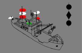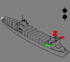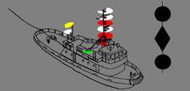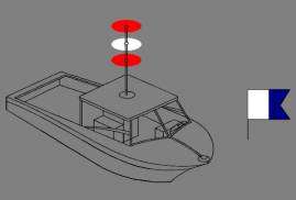 - три круговых огня, расположенных по вертикали на наиболее видном месте. Верхний и нижний из этих огней должны быть красными, а средний огонь - белым;