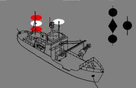 - Судно, ограниченное в возможности маневрировать, за исключением судна, занятого работами по устранению минной опасности, должно выставлять: