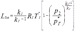 Работа адиабатного расширения газа в турбине от давления р до р2 может быть определена по формуле