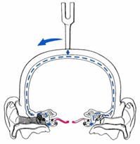 Путь костной проводимости звука: кости черепа – внутреннее ухо (Кортиев орган) – слуховой нерв.