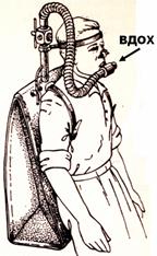 Человек дышит чистым кислородом в закрытой системе 2-3 минуты.