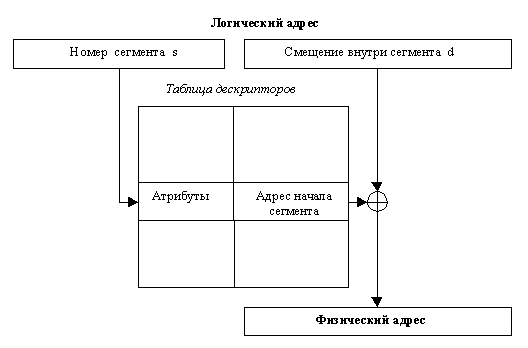 Рис. 9.2 Преобразование логического адреса при сегментной организации памяти.