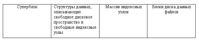 В начале раздела находится суперблок, содержащий общее описание файловой системы, например: