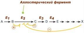 -для координации параллельно протекающих и взаимосвязанных метаболических путей (например, синтез пуриновых и пиримидиновых нуклеотидов, используемых для синтеза нуклеиновых кислот). Таким образом, конечные продукты одного метаболического пути могут быть аллостерическими эффекторами другого метаболического пути.