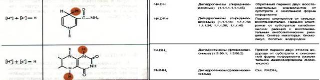 Первичные акцепторы водорода окислительно-восстановительных реакций относят к 2 типам дегидрогеназ: никотинамвдзависимым, содержащим в качестве коферментов производные никотиновой кислоты, и флавинзависимым, содержащим производные рибофлавина.