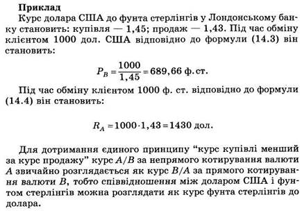 Приклад. Співвідношення між доларом США і фунтом стерлінгів прийнято встановлювати як певну кількість доларів за 1 фунт стерлінгів