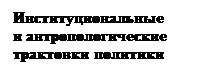 «Властные» определения политики отражают ее сущность, важнейшее конституирующее качество. Они конкретизируются и дополняются с помощьюинституциональных дефиниций. Последние характеризуют политику через организации, институты, в которых воплощается и материализуется власть, и прежде всего через важнейший институт —государство. Политика предстает в этом случае как «участие в делах государства, направление государства, определение форм, задач, содержания деятельности государства»[5].