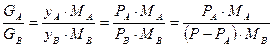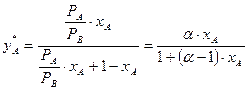 Враховуючи, що за законом Рауля рА = Ра×xА, знайдемо вираз для складу пари у*А, що є рівноважною з рідиною заданого складу хА, тобто знайдемо залежність між складами рівноважних фаз: