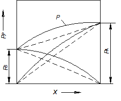 Рис. 3.4. Діаграма р – х для суміші з позитивним відхиленням