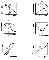 Іноді крива рівноваги майже торкається горизонтальної прямої, проведеної через точку М (рис.3.5, а); тоді вказаній точці також відповідає азеотропна суміш (так званий тангенціальний азеотроп), і розділити початковий розчин неможливо.