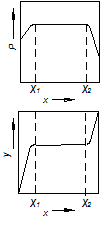 У зв’язку з цим для фізико-хімічної характеристики бінарних систем “рідина – пара” зручно користуватися так званими фазовими діаграмами. Якщо позначити через х склад рідкої фази, а через у – склад парової фази, то, приймаючи t = const, можна побудувати графік залежності тиску пари від складу рідини (діаграма р – х).’