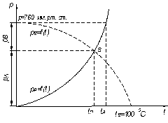 Температура кипіння суміші заданого складу (хА) є функцією тиску пари. Для того, щоб її визначити, будують за значеннями тисків насиченої пари чистих компонентів (з довідників) ізотерми АВ,