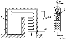 Рис. 3.14. Схема безперервно діючої установки ректифікації: