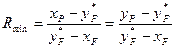 Для визначення Rmin проведемо з точки b/// (рис. 3.17) горизонтальний відрізок b///е до перетину з ординатою точки а. Тангенс кута нахилу робочої лінії зміцнювальної частини колони за Rmin дорівнює відношенню катетів ае і b///е трикутника ab"’e, причому катет ае = уР –