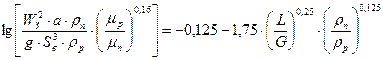 У літературі [5]наводяться також інші розрахункові залежності для визначення фіктивної швидкості пари, що відповідає різним режимам роботи насадковних колон. Так, наприклад, фіктивну швидкість пари, що відповідає початку (точці) підвисання, рекомендується визначати за рівнянням: