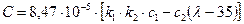 у якій коефіцієнт С залежить від типу тарілки, відстані між тарілками, навантажень за рідиною і парою і фізичними властивостями фаз.