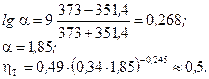 За [4] ККД тарілки змінюється в широких межах, від 0,2 до 0,9. Його можна визначити за графіком, поданим на рис. ІІІ. 4, або розрахувати за рівнянням