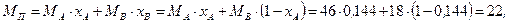 За фазовою t–x-діаграмою (рис. ІІІ.19) знаходимо, що величині