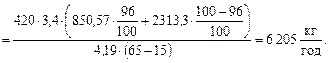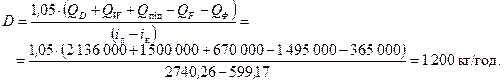 Витрата гріючої пари з врахуванням 5 % втрат у довкілля