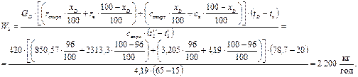 – ентальпія водяної пари і його конденсата за атмосферного тиску, кДж/кг.