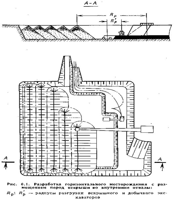 Внутреннее отвалообразование во всех случаях целесообразнее, так как при этом обеспечивается минимальная дальность и благоприятные условия транспортирования грузов, создаются предпосылки для полного восстановления земель, нарушенных открытыми горными работами, исключается необходимость занятия под отвалы ценных земель и т. д.