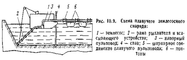 Плавучий землесосный снаряд — это землесосная установка, смонтированная на понтонах и предназначенная для подводной разработки пород (рис. 10.9).