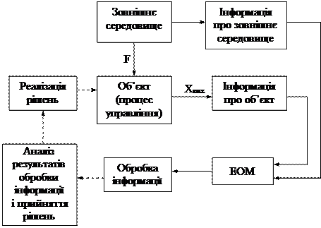 Для простоти будемо розглядати об’єкти управління (ОУ), які характеризуються однією змінною Xвх, однією змінною Хвих та локалізованою збурюючою дією F.